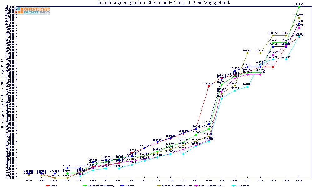 | Besoldungsvergleich B 9 im Jahr 2025 | Anfangsgehalt | ||||||