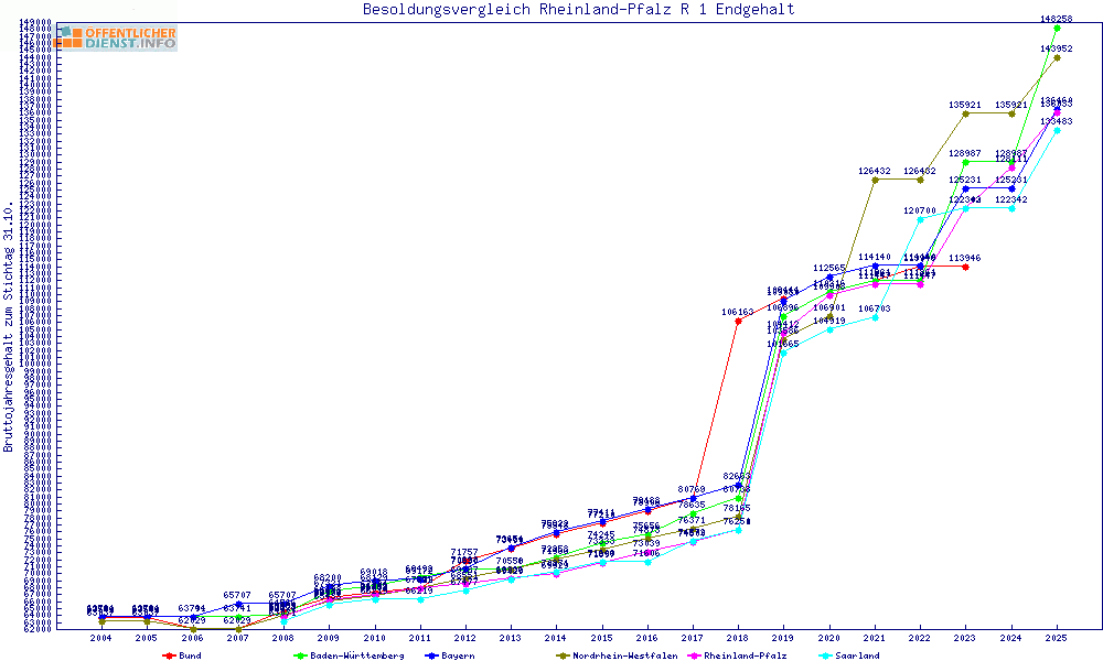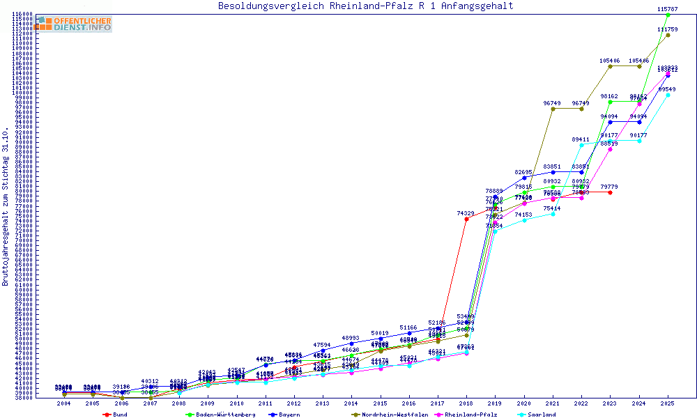 | Besoldungsvergleich R 1 im Jahr 2025 | Anfangsgehalt | ||||||