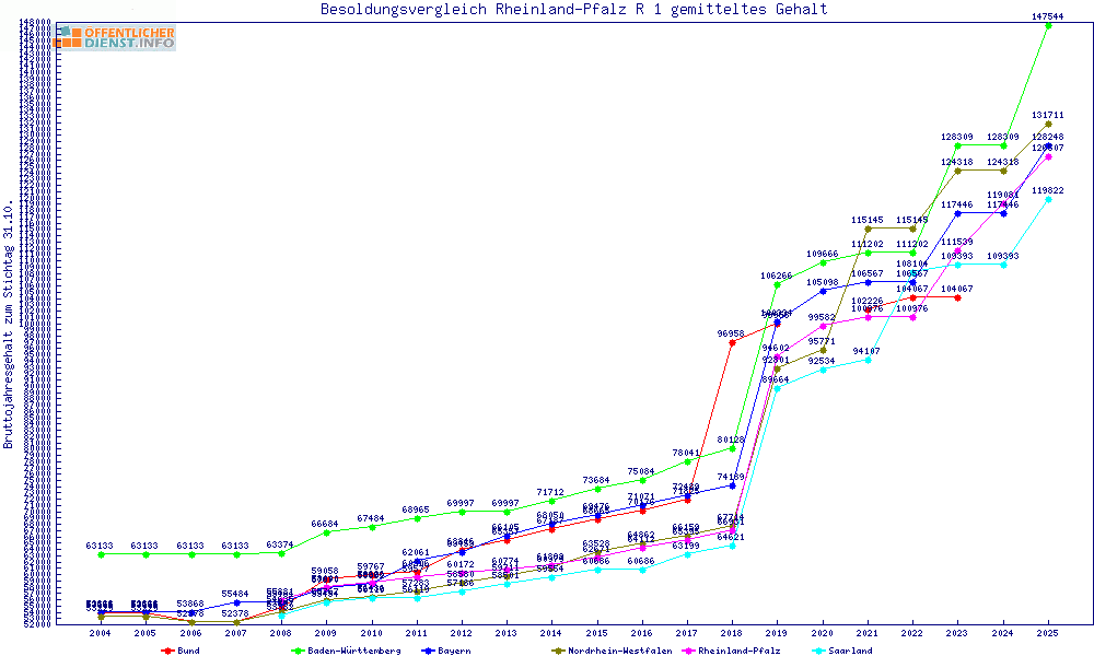 | Besoldungsvergleich R 1 im Jahr 2025 | gemitteltes Gehalt | ||||||