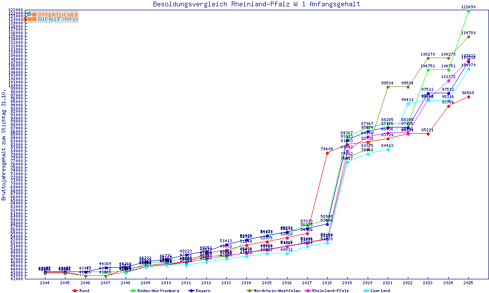 | Besoldungsvergleich W 1 im Jahr 2025 | Anfangsgehalt | ||||||