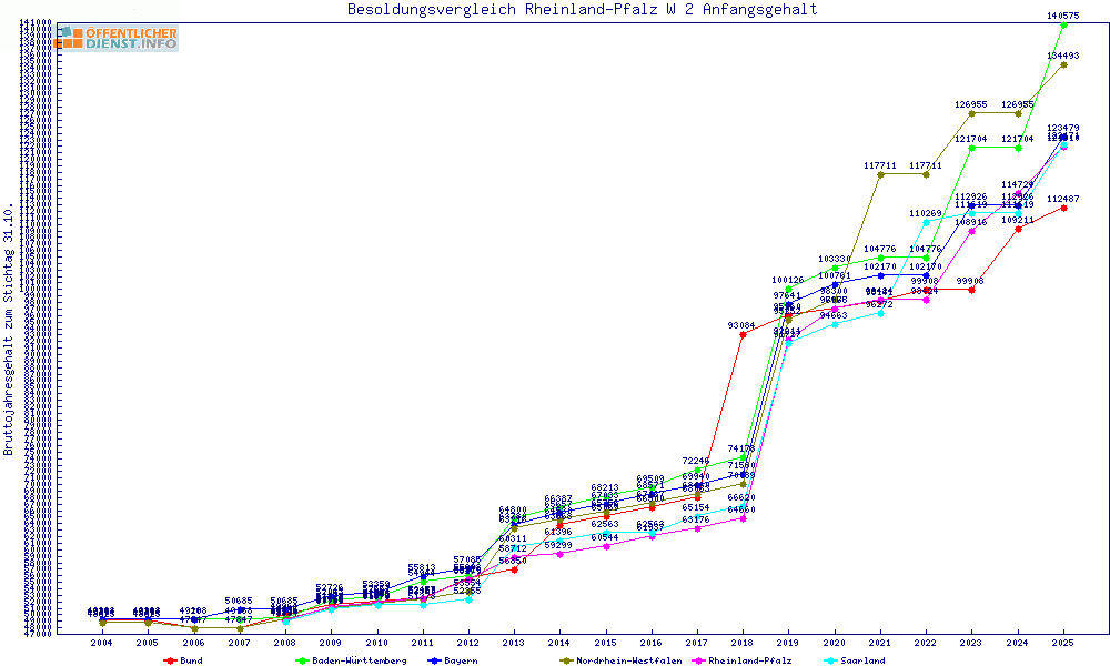 | Besoldungsvergleich W 2 im Jahr 2025 | Anfangsgehalt | ||||||