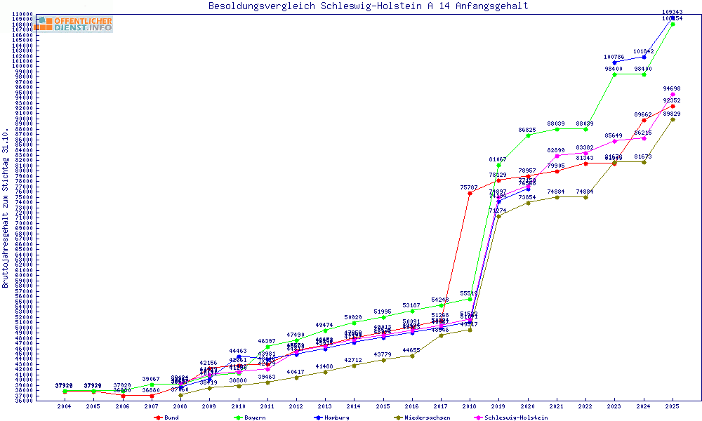 | Besoldungsvergleich A 14 im Jahr 2025 | Anfangsgehalt | ||||||