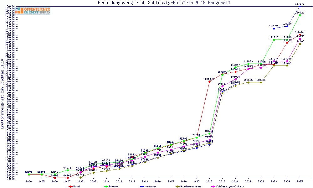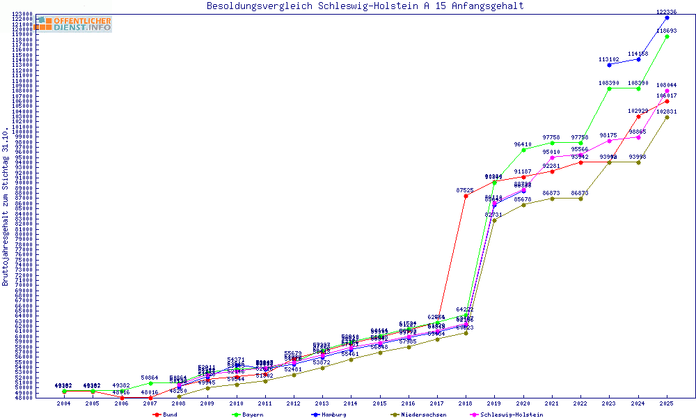 | Besoldungsvergleich A 15 im Jahr 2025 | Anfangsgehalt | ||||||
