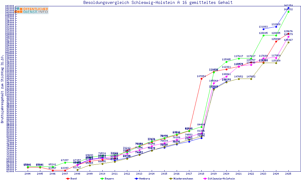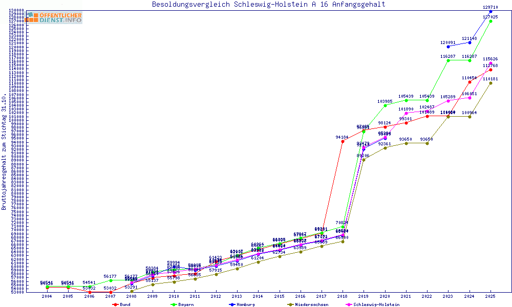 | Besoldungsvergleich A 16 im Jahr 2025 | Anfangsgehalt | ||||||