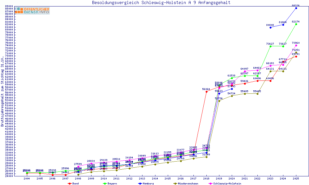 | Besoldungsvergleich A 9 im Jahr 2025 | Anfangsgehalt | ||||||