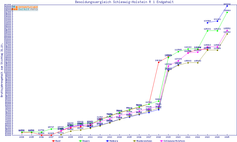 | Besoldungsvergleich R 1 im Jahr 2025 | Anfangsgehalt | ||||||