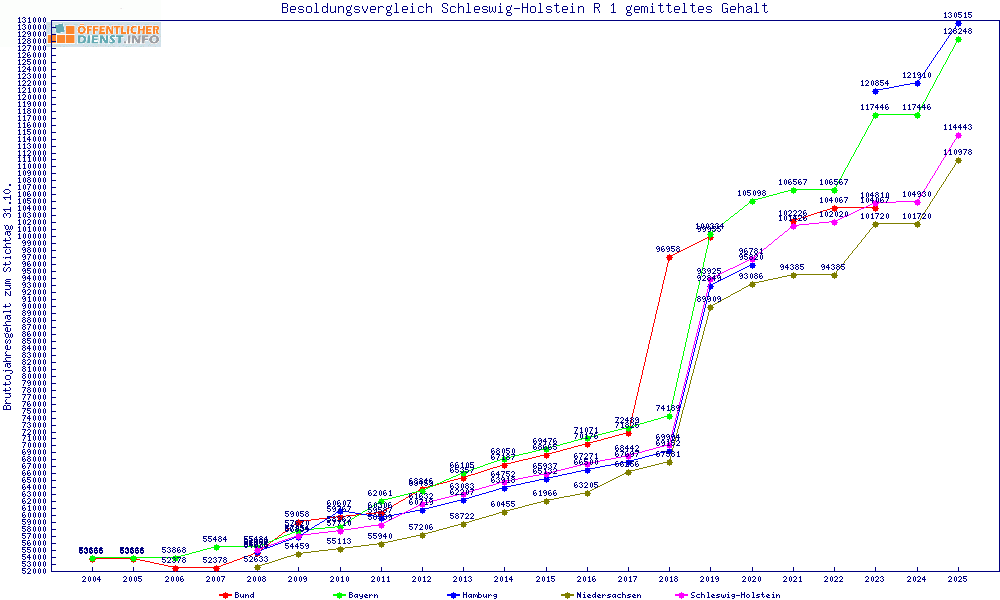 graphischer Besoldungsvergleich gemitteltes Gehalt aller Bundesländer