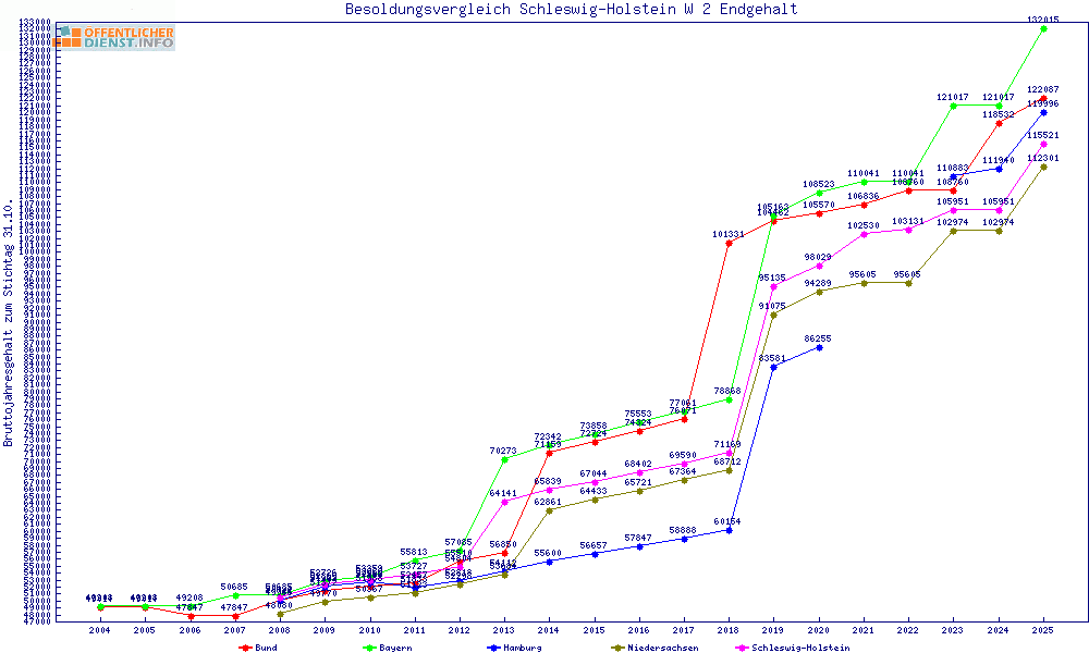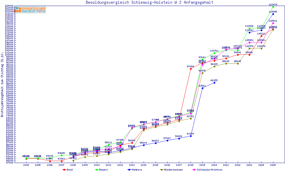 | Besoldungsvergleich W 2 im Jahr 2025 | Anfangsgehalt | ||||||