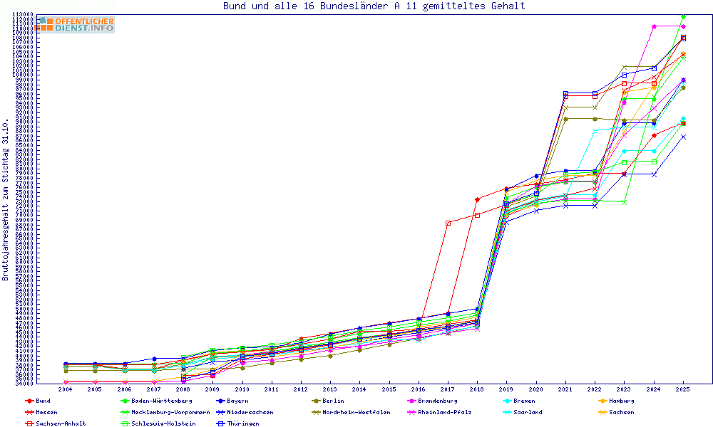 | Besoldungsvergleich A 11 im Jahr 2025 | gemitteltes Gehalt | ||||||