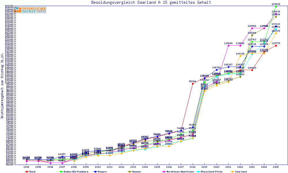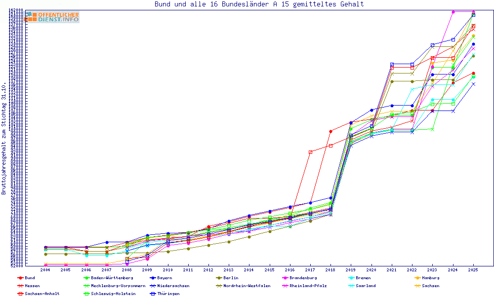 | Besoldungsvergleich A 15 im Jahr 2025 | gemitteltes Gehalt | ||||||