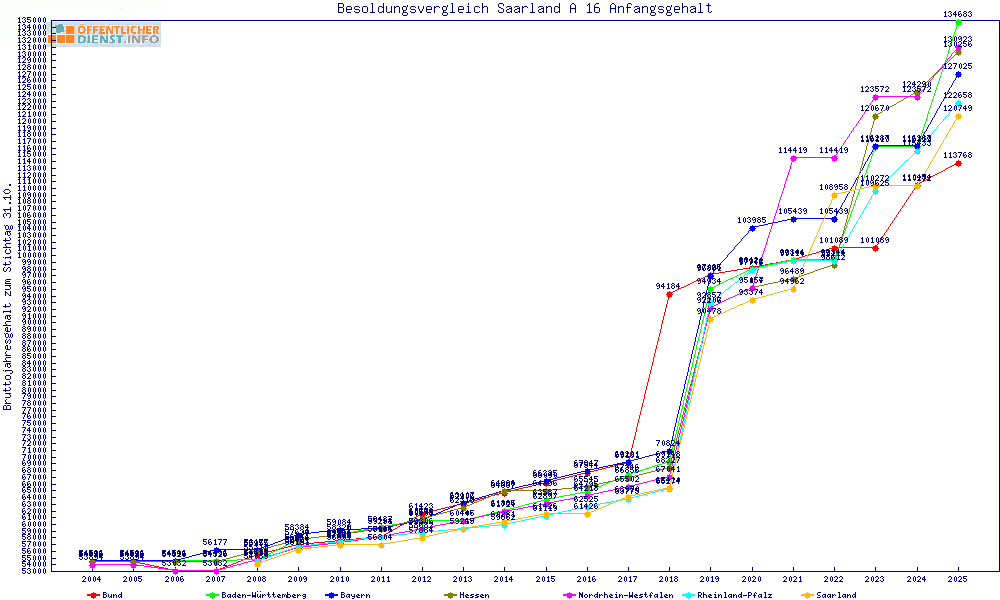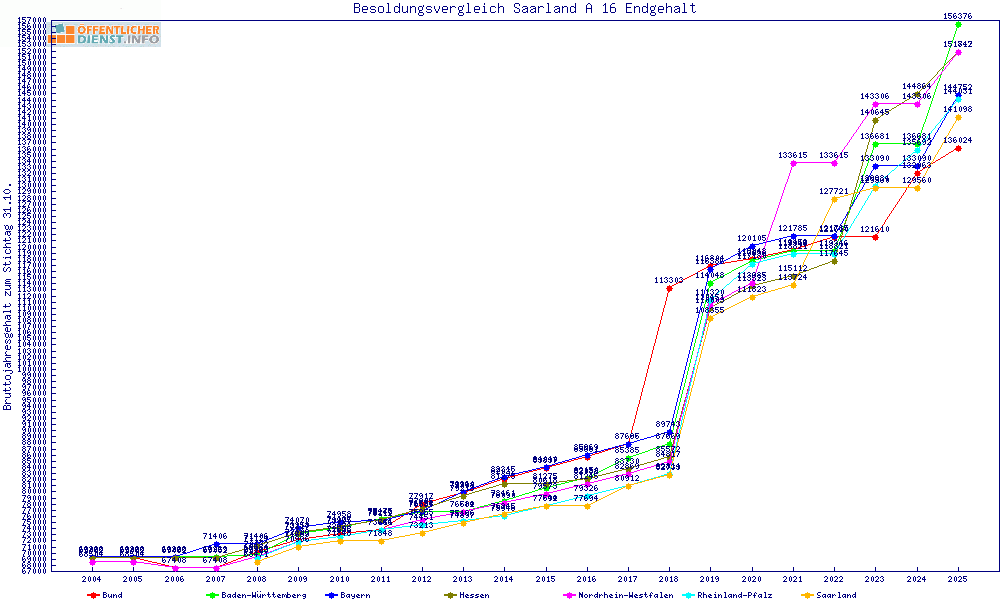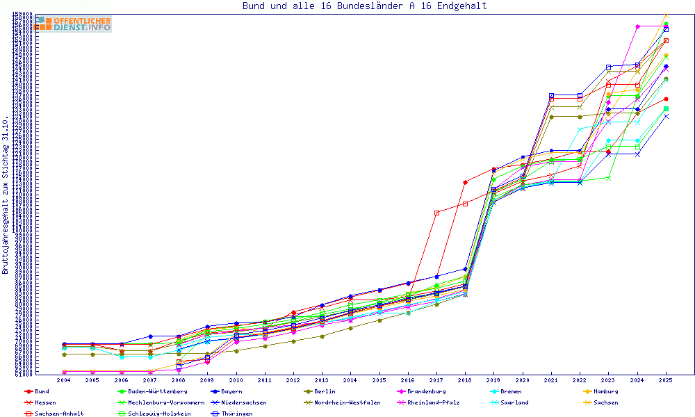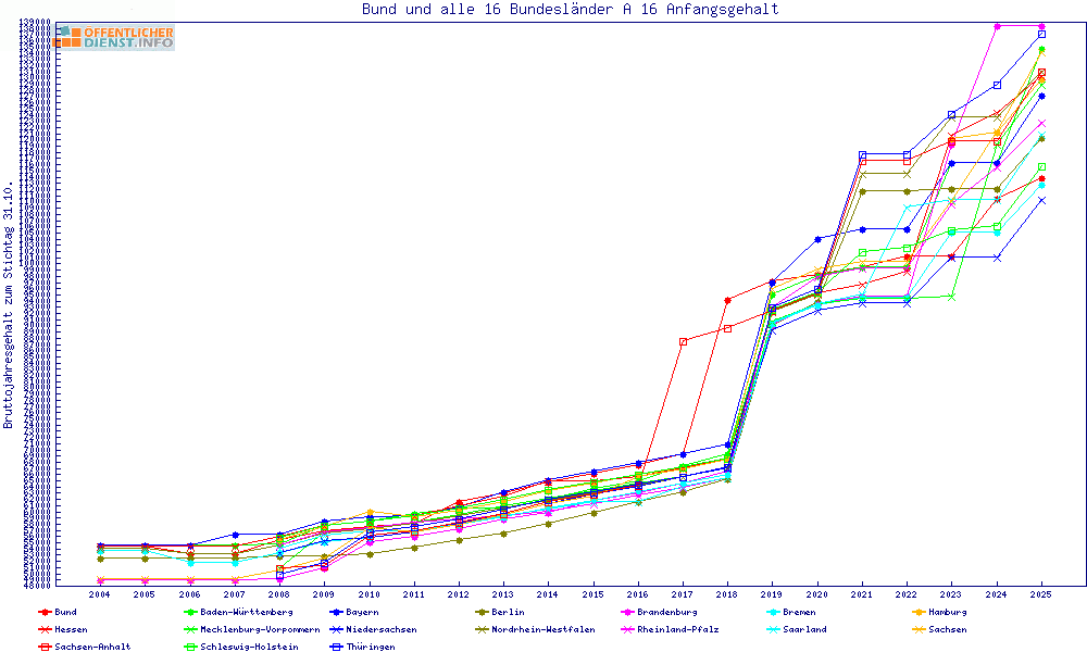 | Besoldungsvergleich A 16 im Jahr 2025 | Anfangsgehalt | ||||||