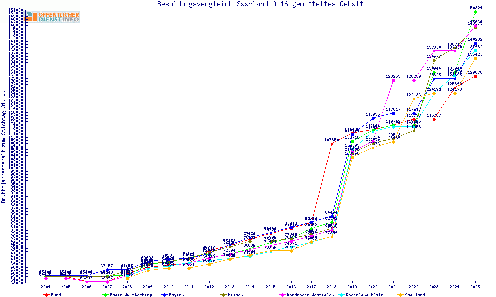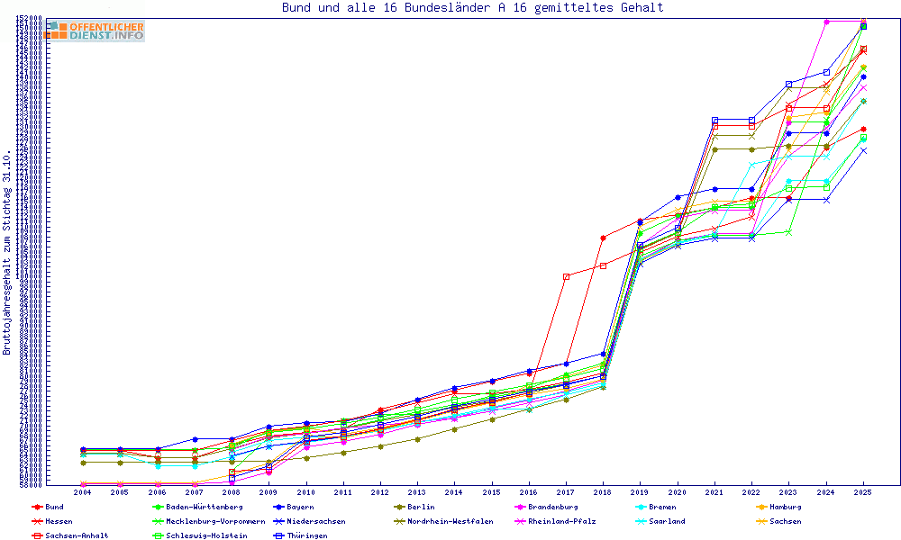 | Besoldungsvergleich A 16 im Jahr 2025 | gemitteltes Gehalt | ||||||