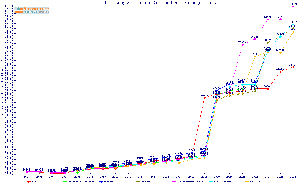 | Besoldungsvergleich A 6 im Jahr 2025 | Anfangsgehalt | ||||||