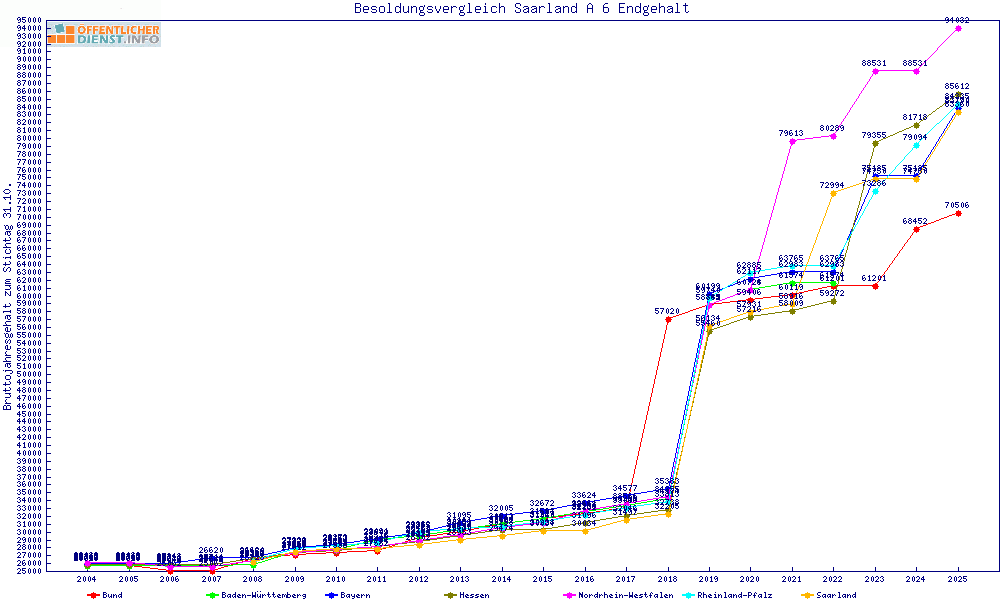 | Besoldungsvergleich A 6 im Jahr 2025 | Endgehalt | |||||||