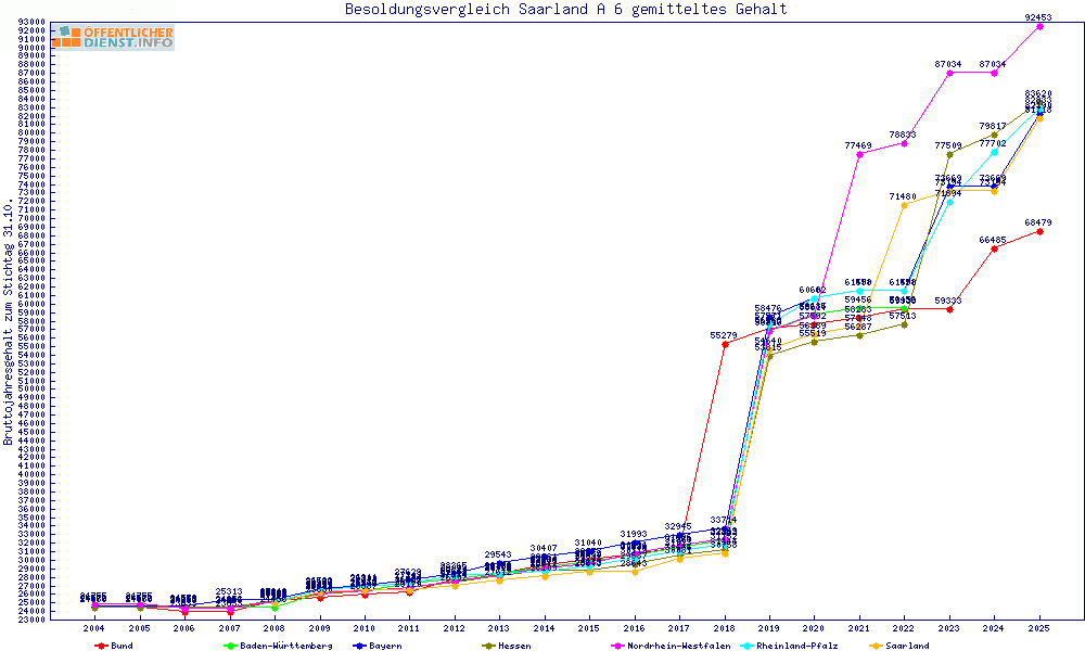 | Besoldungsvergleich A 6 im Jahr 2025 | gemitteltes Gehalt | ||||||