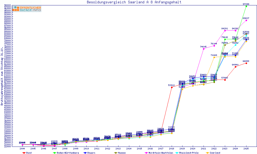 | Besoldungsvergleich A 8 im Jahr 2025 | Anfangsgehalt | ||||||