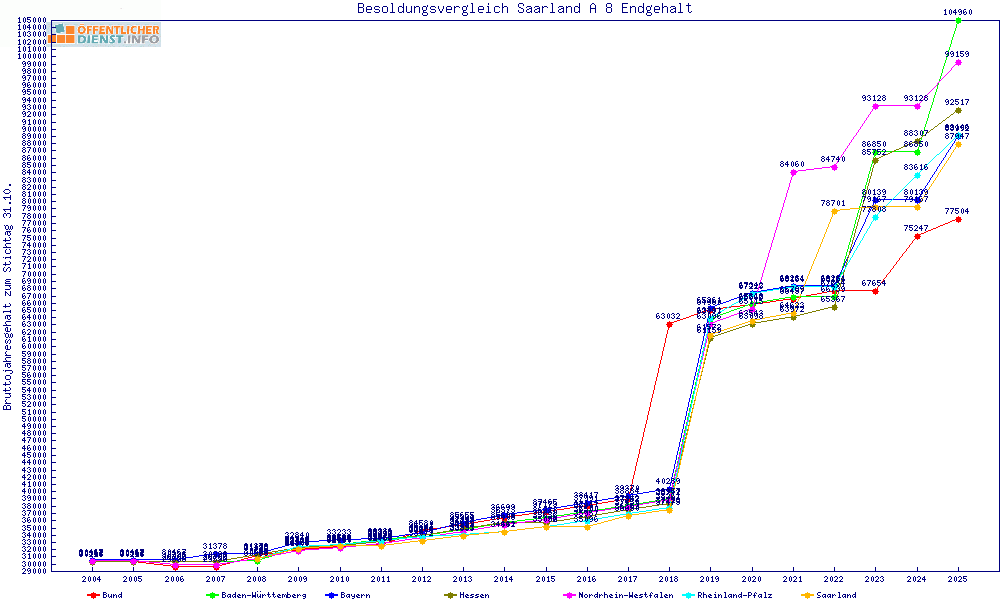 | Besoldungsvergleich A 8 im Jahr 2025 | Endgehalt | |||||||
