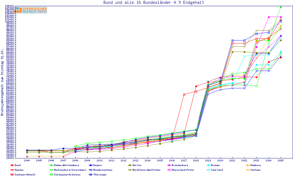 | Besoldungsvergleich A 9 im Jahr 2025 | Endgehalt | |||||||