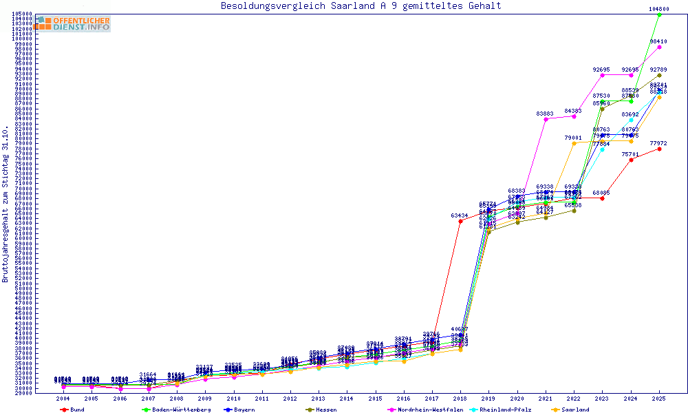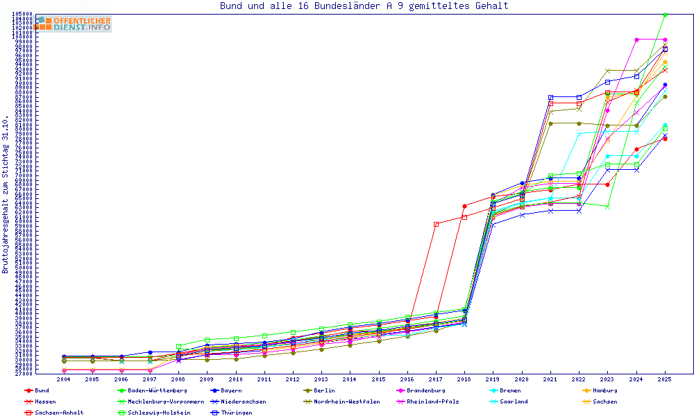 | Besoldungsvergleich A 9 im Jahr 2025 | gemitteltes Gehalt | ||||||