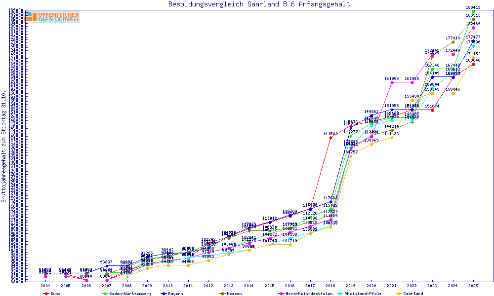 | Besoldungsvergleich B 6 im Jahr 2025 | Anfangsgehalt | ||||||