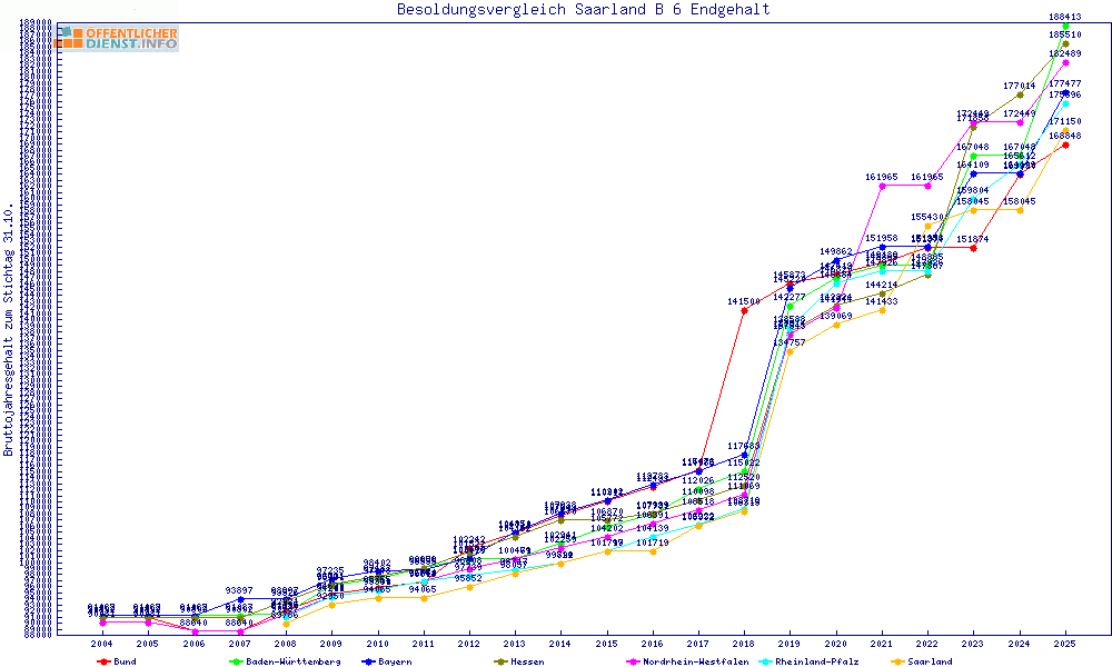 | Besoldungsvergleich B 6 im Jahr 2025 | gemitteltes Gehalt | ||||||