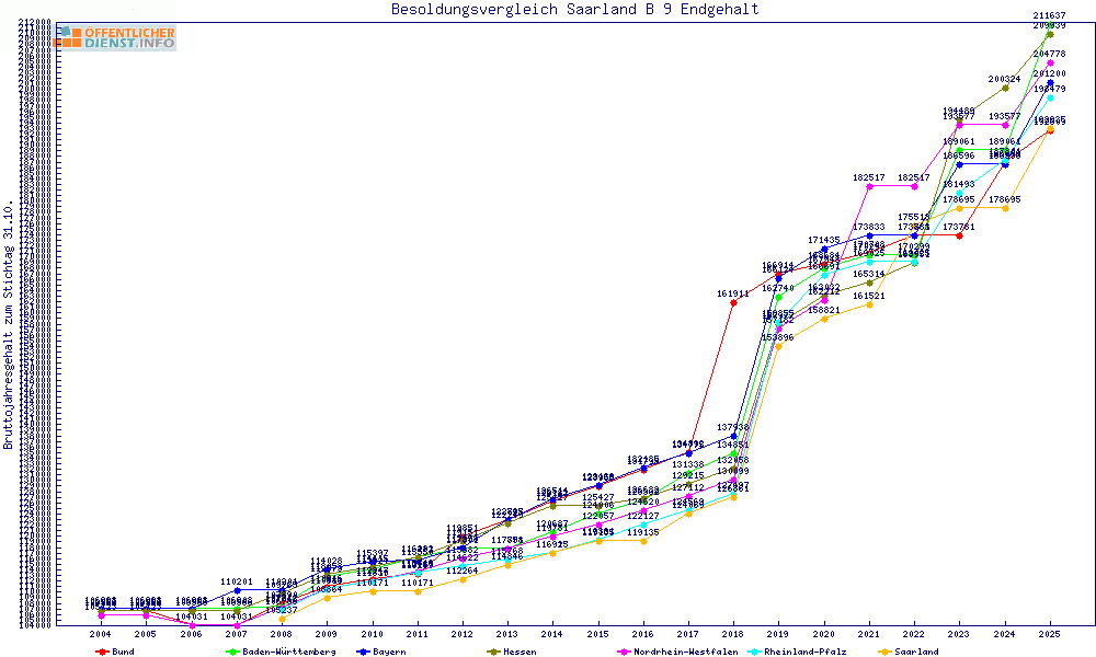 | Besoldungsvergleich B 9 im Jahr 2025 | Anfangsgehalt | ||||||
