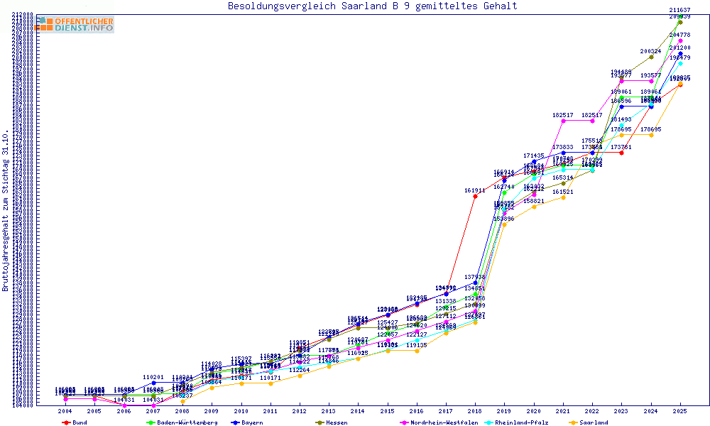 | Besoldungsvergleich B 9 im Jahr 2025 | gemitteltes Gehalt | ||||||