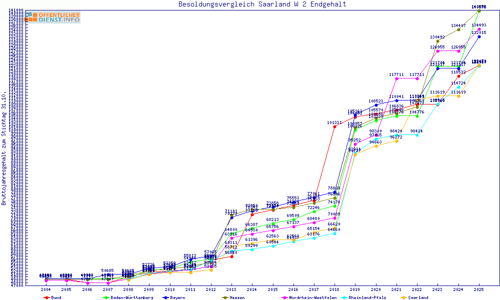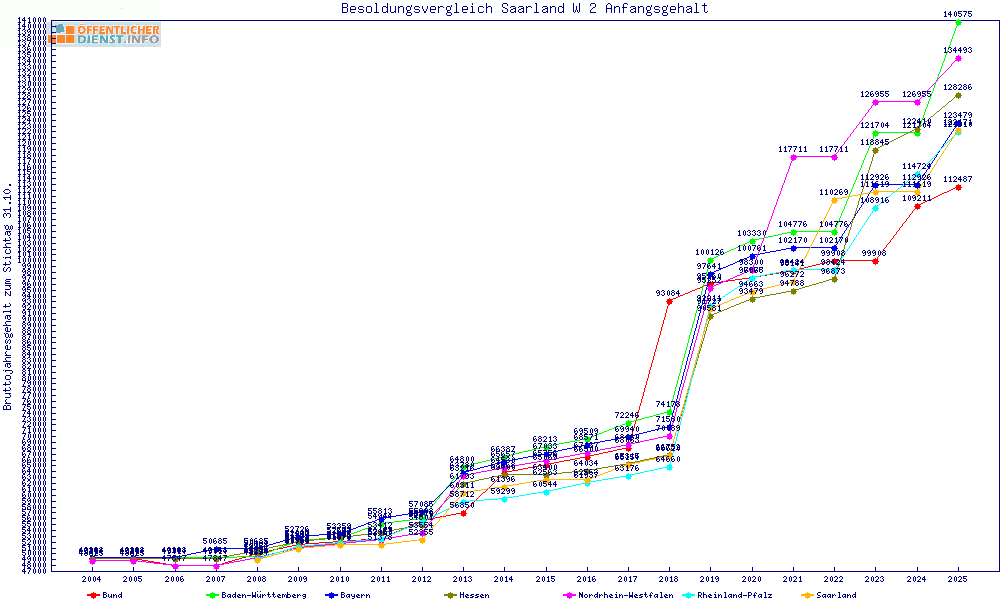 | Besoldungsvergleich W 2 im Jahr 2025 | Anfangsgehalt | ||||||