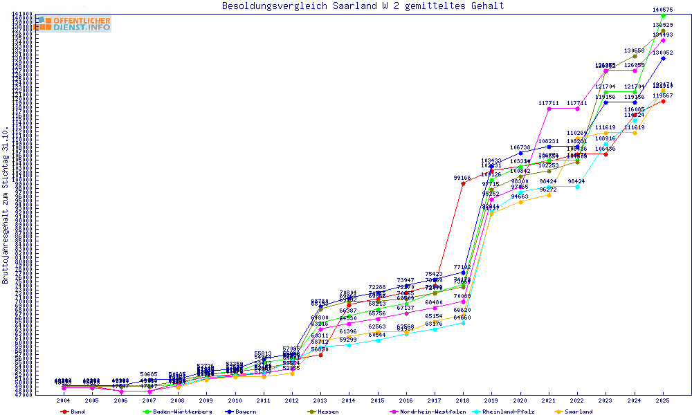 | Besoldungsvergleich W 2 im Jahr 2025 | gemitteltes Gehalt | ||||||