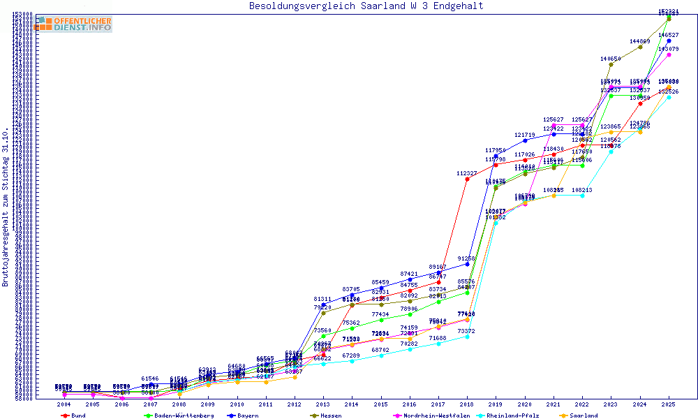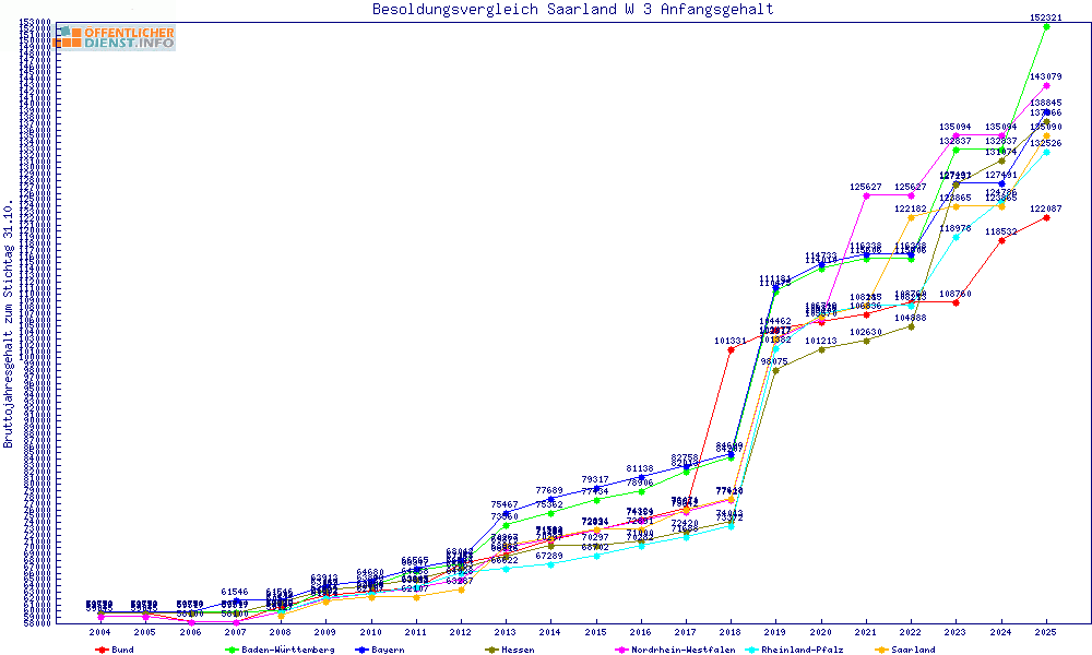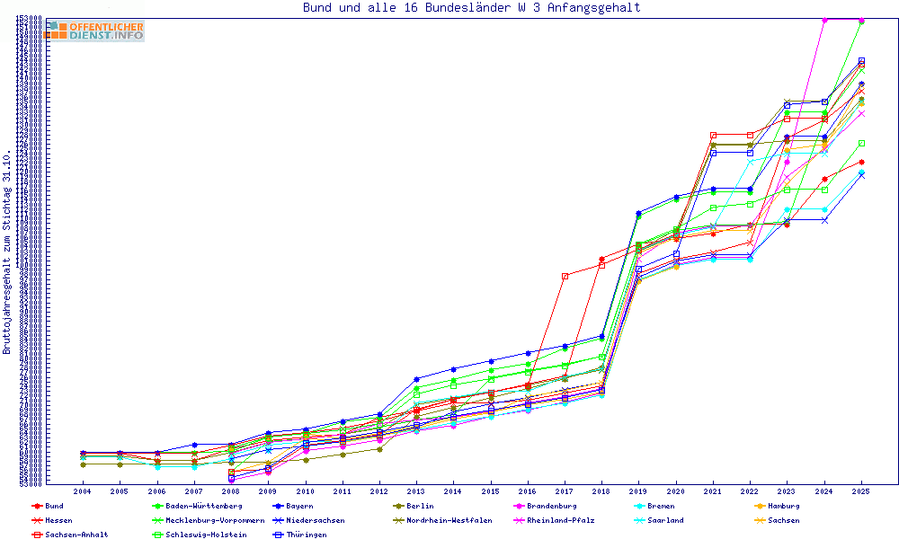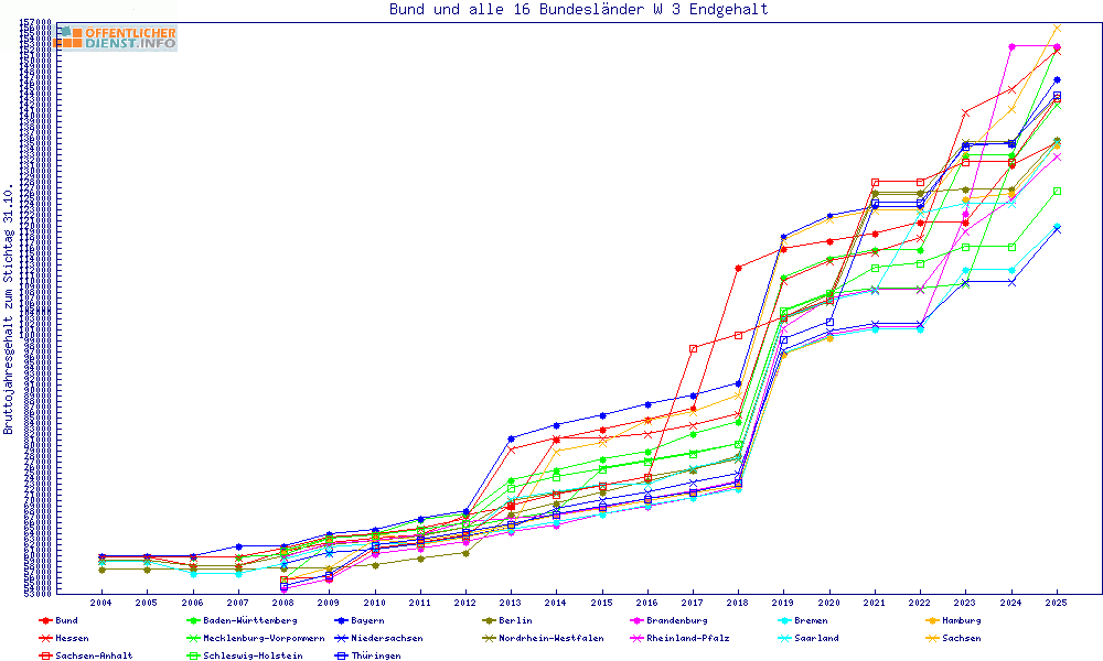| Besoldungsvergleich W 3 im Jahr 2025 | Anfangsgehalt | ||||||