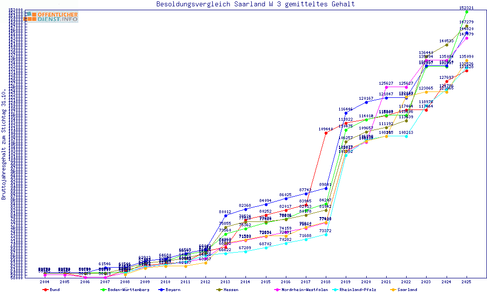 | Besoldungsvergleich W 3 im Jahr 2025 | gemitteltes Gehalt | ||||||