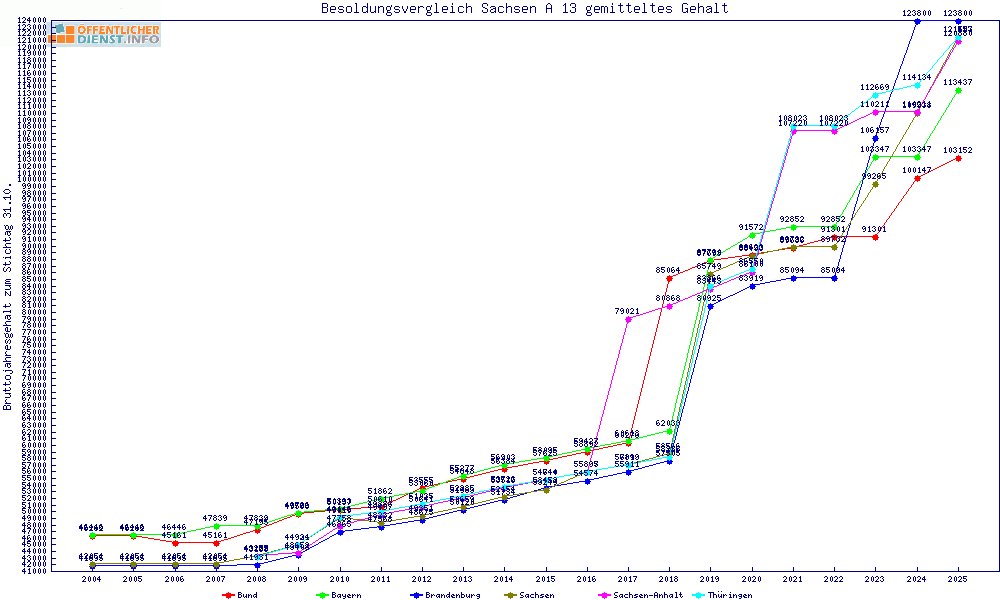 | Besoldungsvergleich A 13 im Jahr 2025 | gemitteltes Gehalt | ||||||