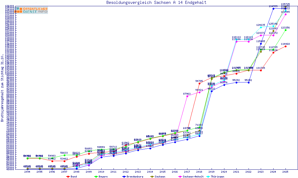 | Besoldungsvergleich A 14 im Jahr 2025 | Anfangsgehalt | ||||||