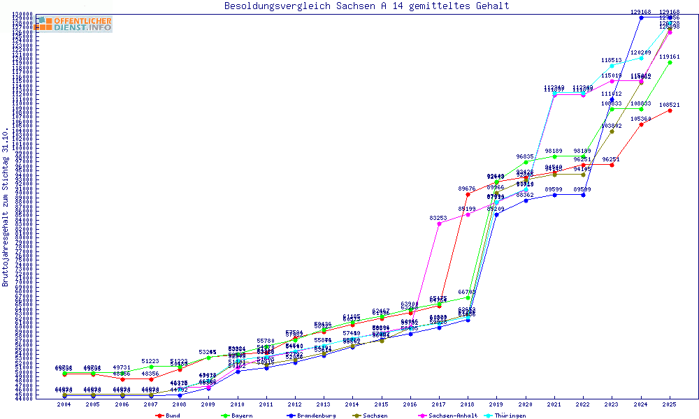 | Besoldungsvergleich A 14 im Jahr 2025 | gemitteltes Gehalt | ||||||