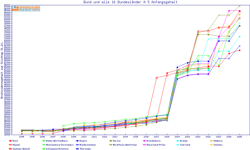 | Besoldungsvergleich A 5 im Jahr 2025 | Anfangsgehalt | ||||||