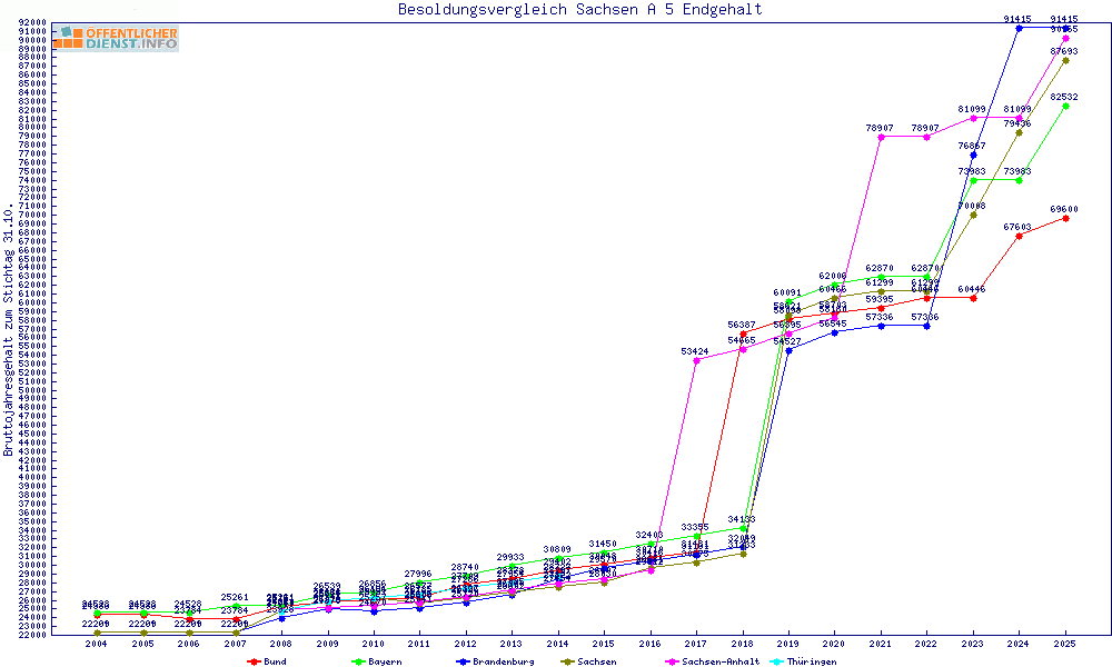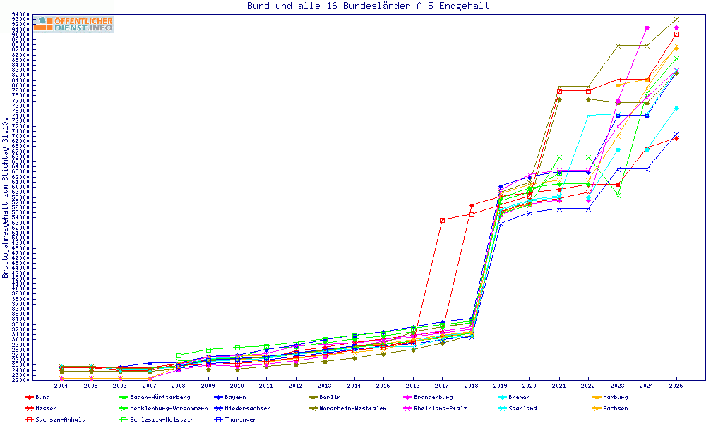 | Besoldungsvergleich A 5 im Jahr 2025 | Endgehalt | |||||||