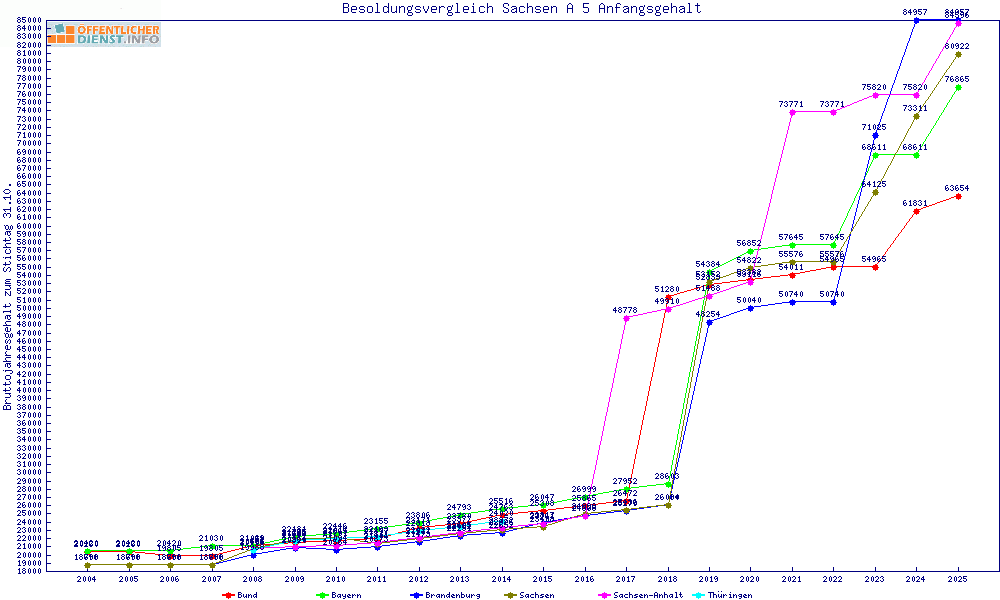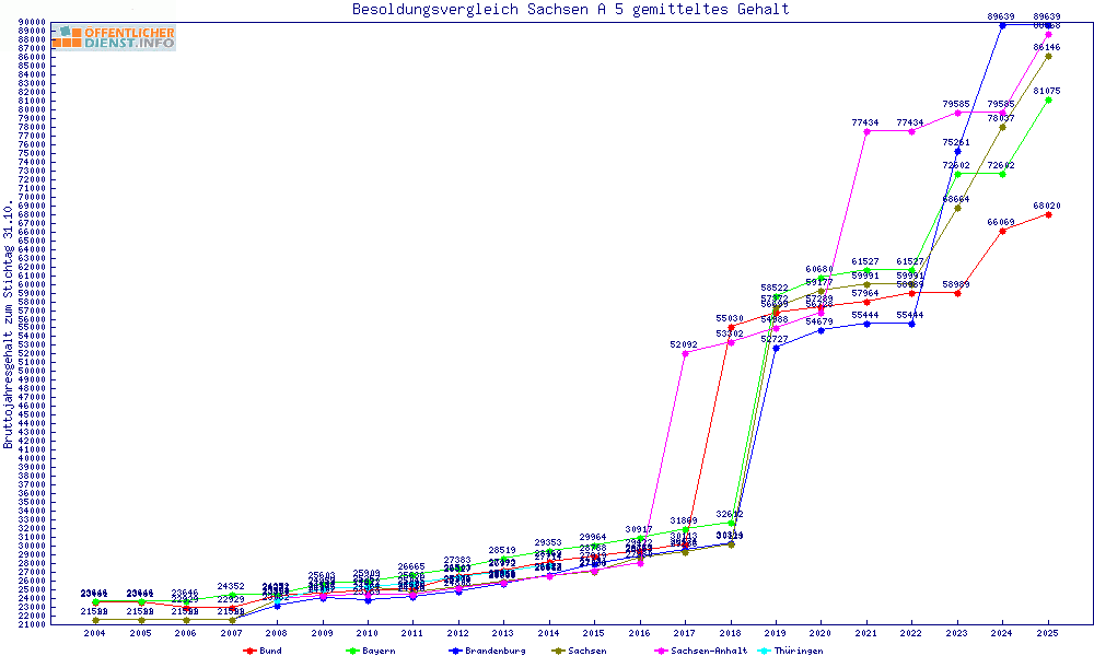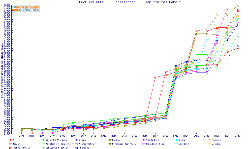 | Besoldungsvergleich A 5 im Jahr 2025 | gemitteltes Gehalt | ||||||