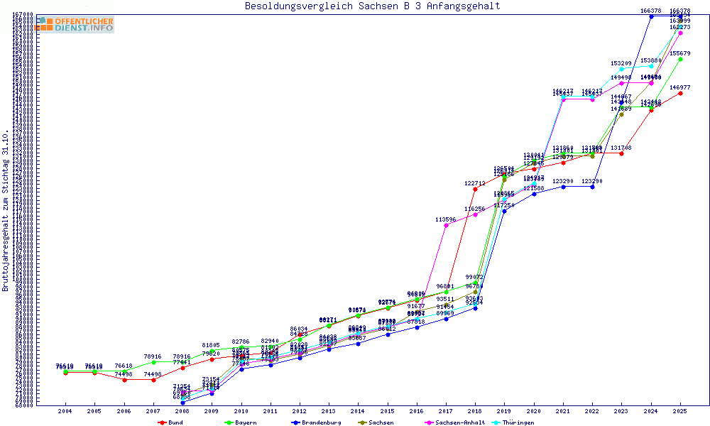 | Besoldungsvergleich B 3 im Jahr 2025 | gemitteltes Gehalt | ||||||