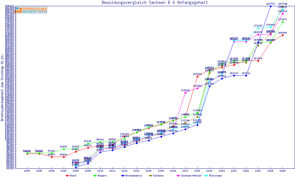 | Besoldungsvergleich B 6 im Jahr 2025 | Anfangsgehalt | ||||||