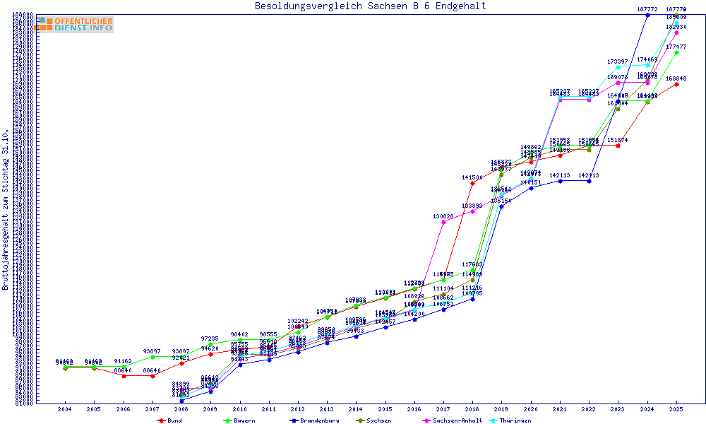| Besoldungsvergleich B 6 im Jahr 2025 | gemitteltes Gehalt | ||||||