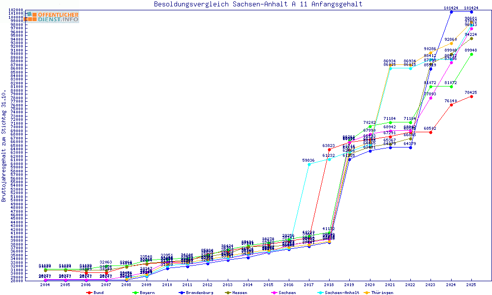 | Besoldungsvergleich A 11 im Jahr 2025 | Anfangsgehalt | ||||||