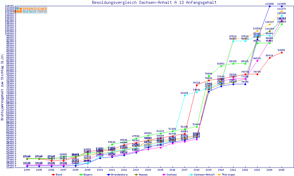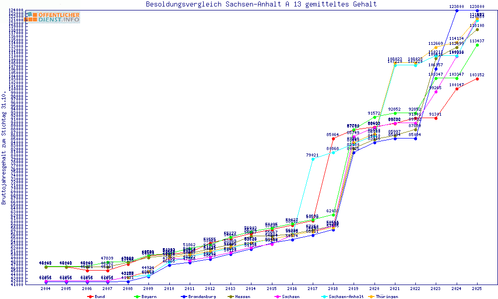 | Sachsen-Anhalt | 125.227 € | +6580 € | +5.5% | 23 Jahre | ||||