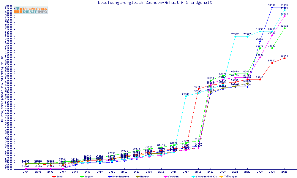 | Sachsen-Anhalt | 90.166 € | +6983 € | +8.4% | 23 Jahre | ||||