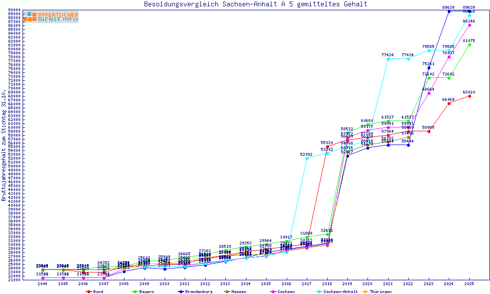 | Besoldungsvergleich A 5 im Jahr 2025 | gemitteltes Gehalt | ||||||