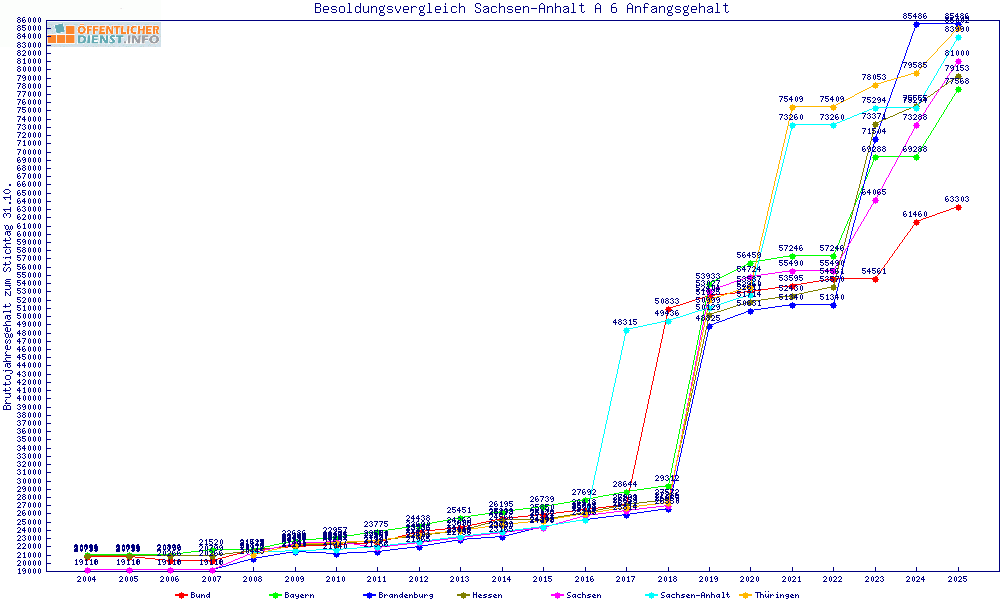 | Besoldungsvergleich A 6 im Jahr 2025 | Anfangsgehalt | ||||||