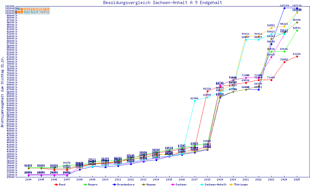 | Sachsen-Anhalt | 100.532 € | +6458 € | +6.9% | 23 Jahre | ||||