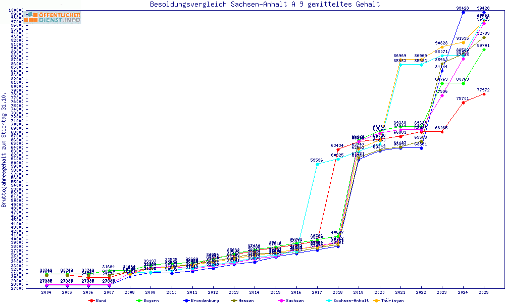 | Jahresgehalt brutto | im Vergleich mit Sachsen-Anhalt |