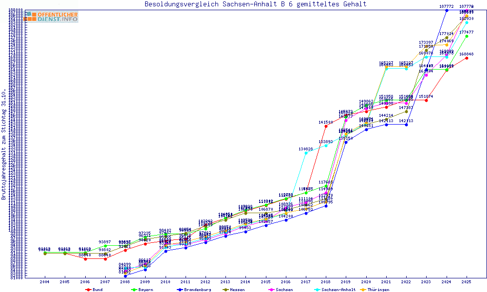 | Besoldungsvergleich B 6 im Jahr 2025 | gemitteltes Gehalt | ||||||