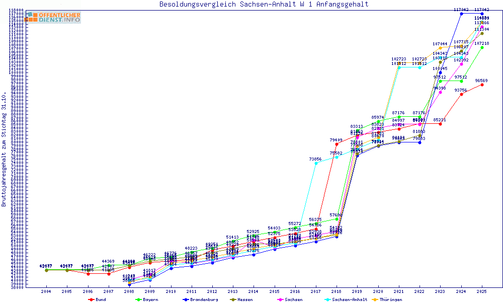 | Besoldungsvergleich W 1 im Jahr 2025 | Anfangsgehalt | ||||||