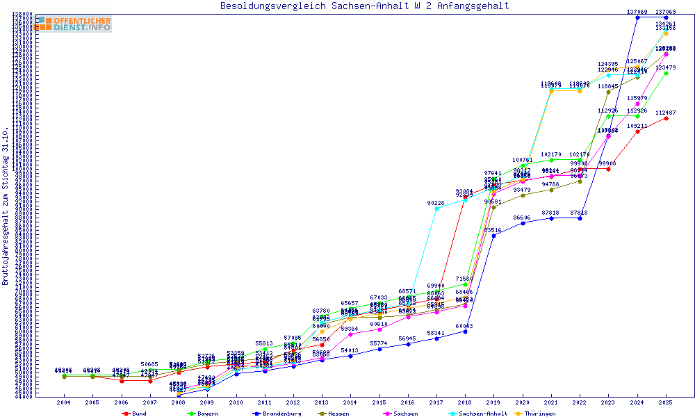 | Besoldungsvergleich W 2 im Jahr 2025 | Anfangsgehalt | ||||||